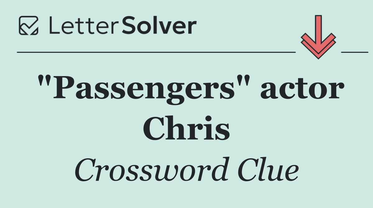 We specialize in solving many of your favorite puzzles, including the New York Times, USA Today, LA Times, Daily Themed Crosswords, and more. The ""Passengers" actor Chris" clue from the Eugene Sheffer puzzle, October 18 edition, is one such example.