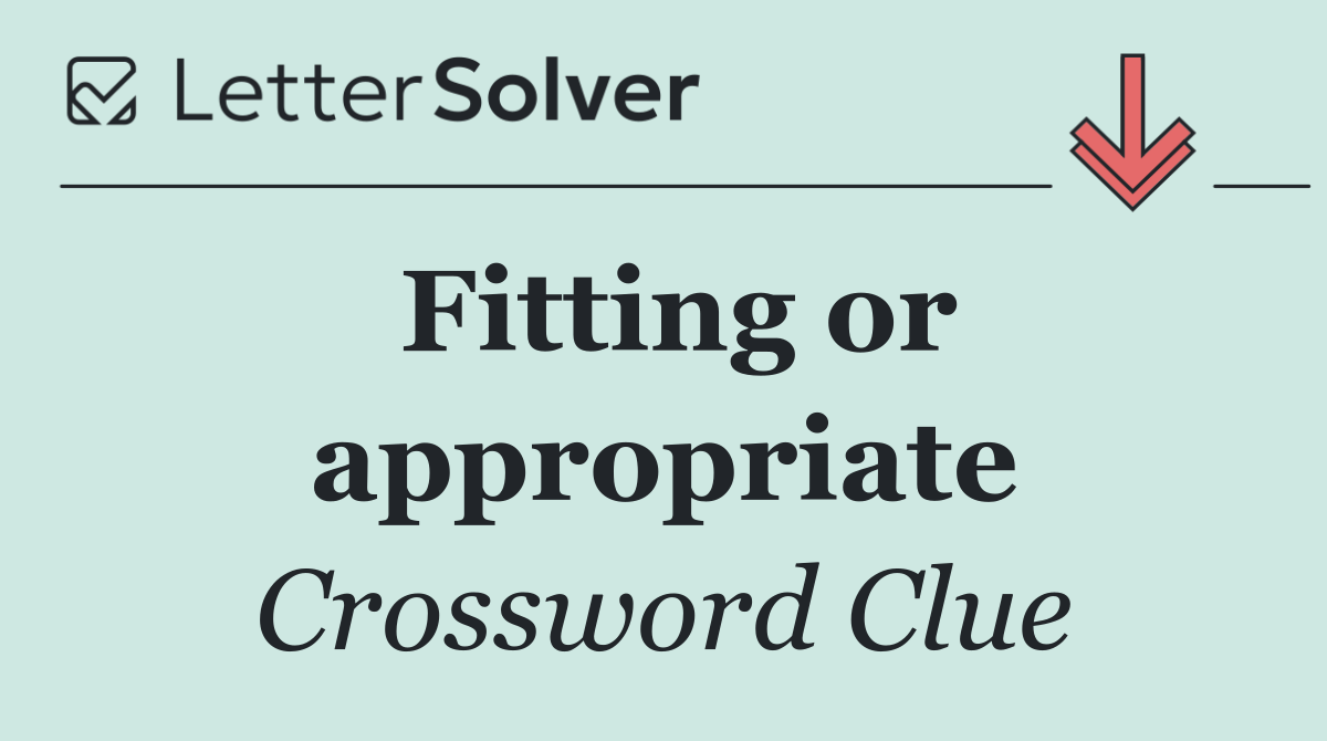 We specialize in solving many of your favorite puzzles, including the New York Times, USA Today, LA Times, Daily Themed Crosswords, and more. The "Fitting or appropriate" clue from the Family Time puzzle, November 11 edition, is one such example.