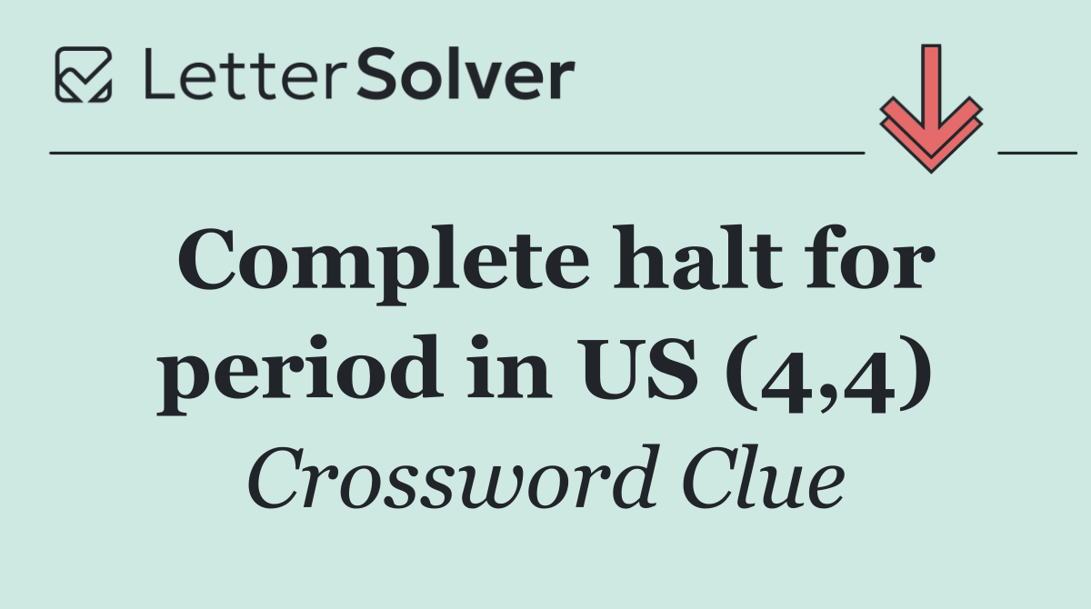 We specialize in solving many of your favorite puzzles, including the New York Times, USA Today, LA Times, Daily Themed Crosswords, and more. The "Complete halt for period in US (4,4)" clue from the Guardian Cryptic puzzle, April 17 edition, is one such example.