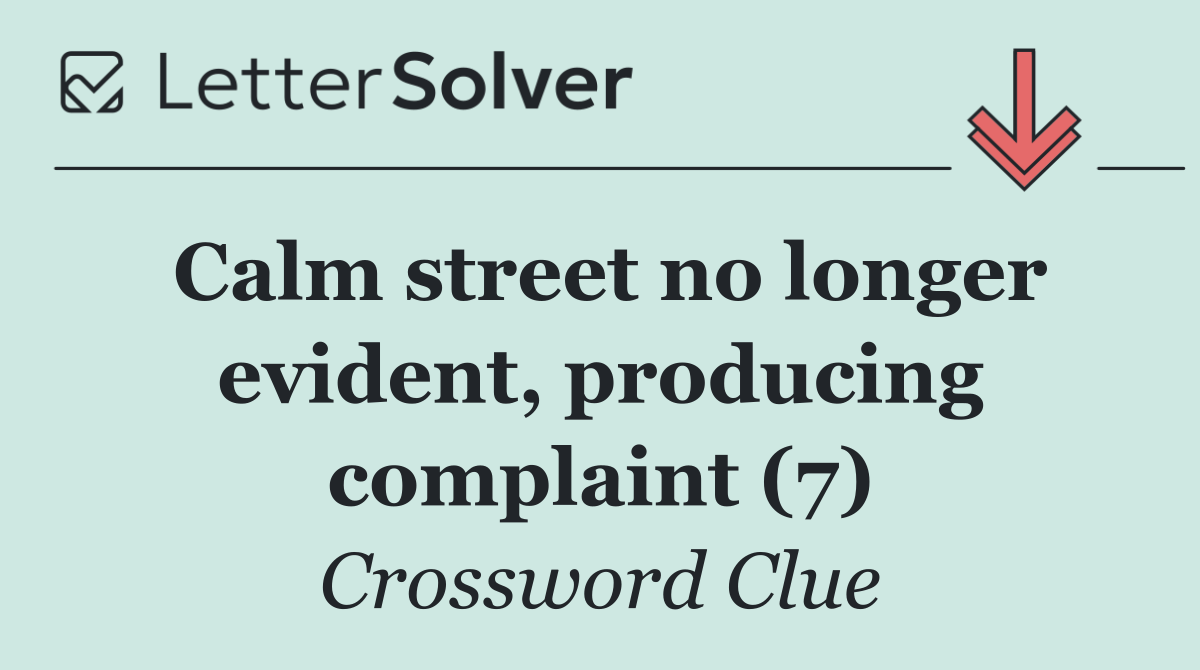 We specialize in solving many of your favorite puzzles, including the New York Times, USA Today, LA Times, Daily Themed Crosswords, and more. The "Calm street no longer evident, producing complaint (7)" clue from the Guardian Quiptic puzzle, June 22 edition, is one such example.