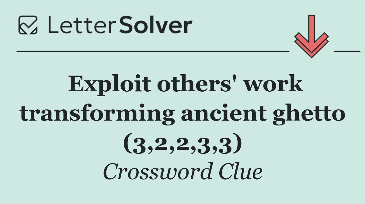 We specialize in solving many of your favorite puzzles, including the New York Times, USA Today, LA Times, Daily Themed Crosswords, and more. The "Exploit others' work transforming ancient ghetto (3,2,2,3,3)" clue from the Guardian Quiptic puzzle, January 19 edition, is one such example.
