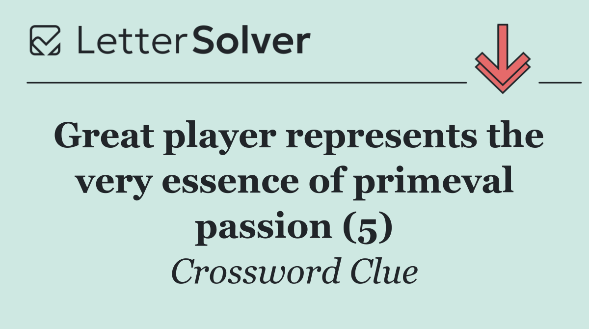 We specialize in solving many of your favorite puzzles, including the New York Times, USA Today, LA Times, Daily Themed Crosswords, and more. The "Great player represents the very essence of primeval passion (5)" clue from the Guardian Quiptic puzzle, January 12 edition, is one such example.