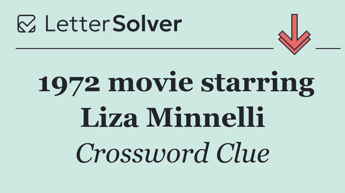 We specialize in solving many of your favorite puzzles, including the New York Times, USA Today, LA Times, Daily Themed Crosswords, and more. The "1972 movie starring Liza Minnelli" clue from the Guardian Weekend puzzle, July 01 edition, is one such example.