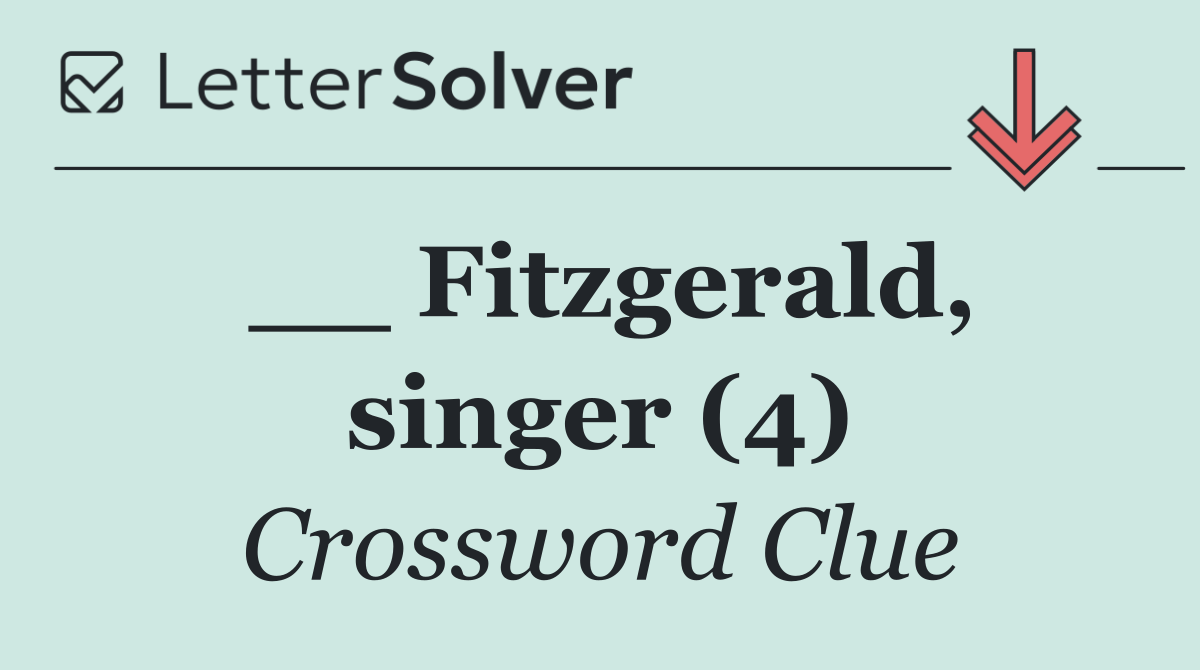 We specialize in solving many of your favorite puzzles, including the New York Times, USA Today, LA Times, Daily Themed Crosswords, and more. The "__ Fitzgerald, singer (4)" clue from the Guardian Weekend puzzle, January 11 edition, is one such example.