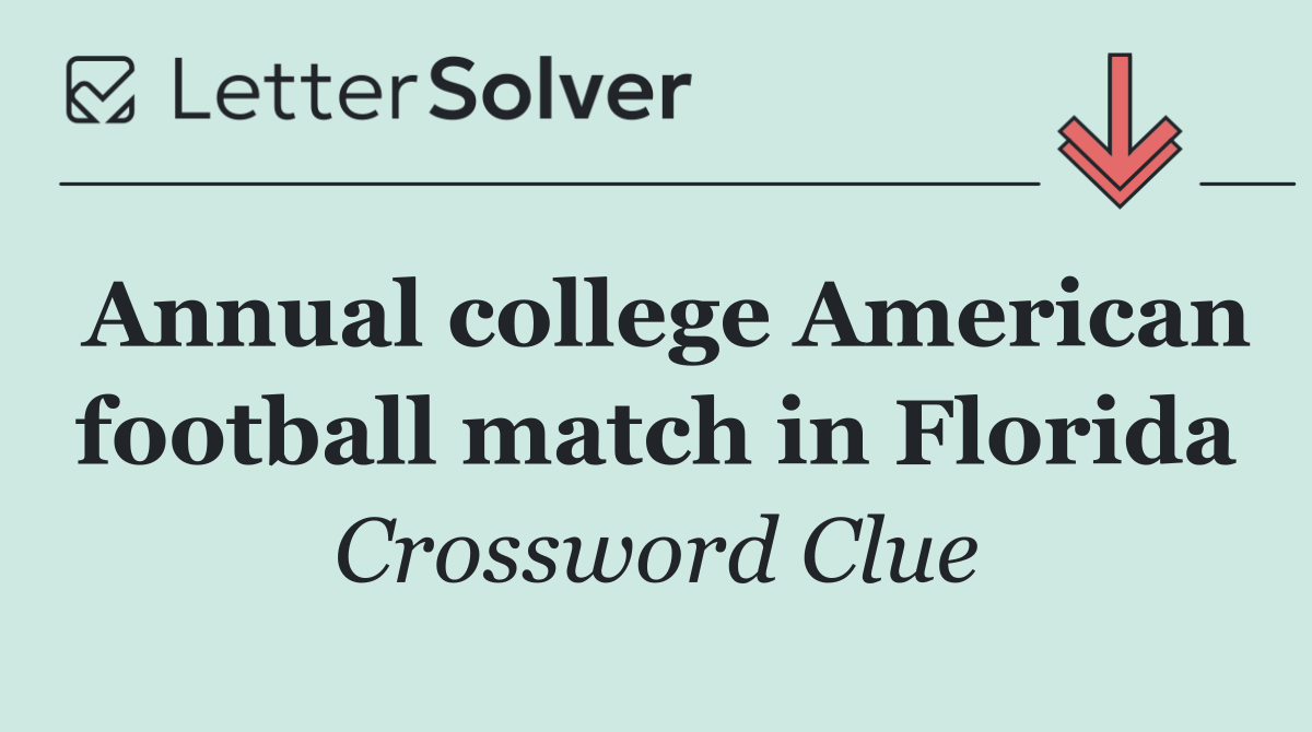 We specialize in solving many of your favorite puzzles, including the New York Times, USA Today, LA Times, Daily Themed Crosswords, and more. The "Annual college American football match in Florida" clue from the Guardian Weekend puzzle, March 16 edition, is one such example.