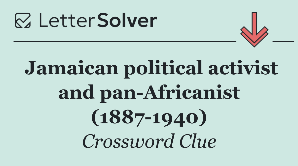 We specialize in solving many of your favorite puzzles, including the New York Times, USA Today, LA Times, Daily Themed Crosswords, and more. The "Jamaican political activist and pan Africanist (1887 1940)" clue from the Guardian Weekend puzzle, December 04 edition, is one such example.
