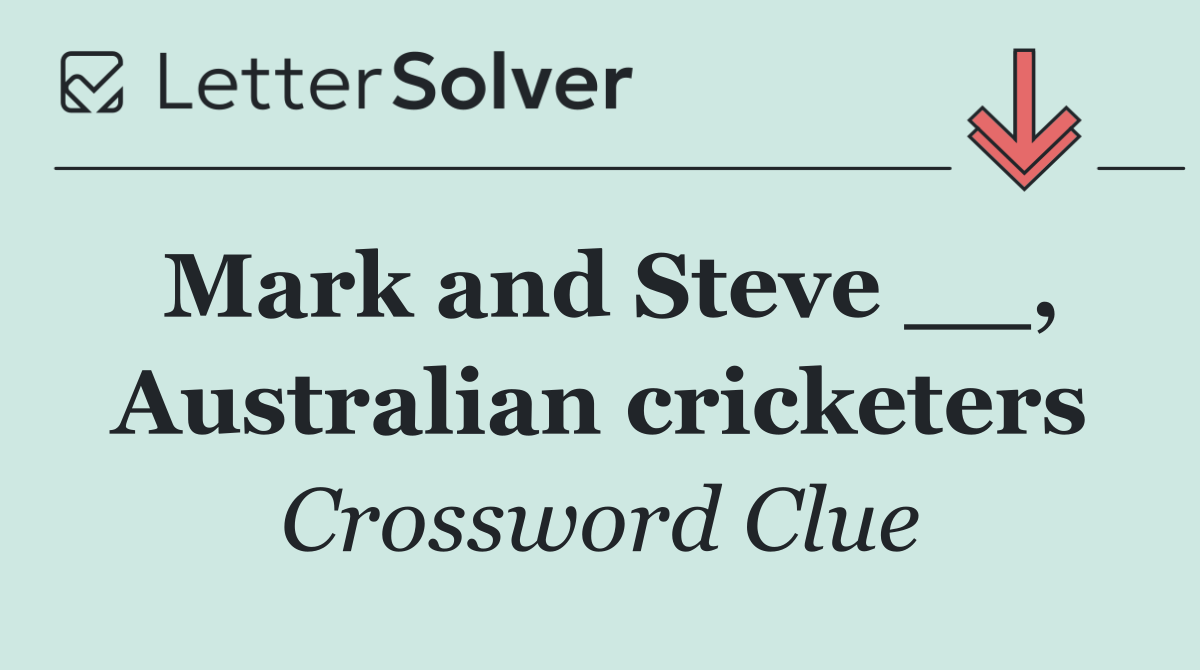 We specialize in solving many of your favorite puzzles, including the New York Times, USA Today, LA Times, Daily Themed Crosswords, and more. The "Mark and Steve __, Australian cricketers" clue from the Guardian Weekend puzzle, December 17 edition, is one such example.