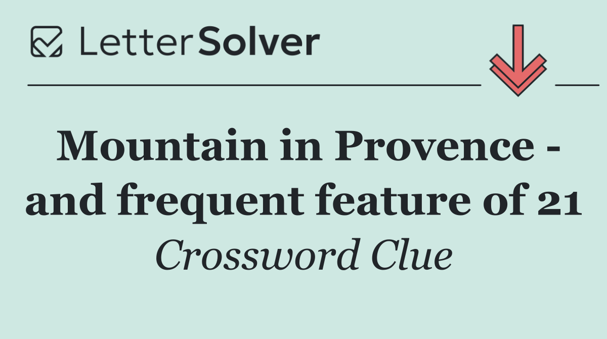 We specialize in solving many of your favorite puzzles, including the New York Times, USA Today, LA Times, Daily Themed Crosswords, and more. The "Mountain in Provence and frequent feature of 21" clue from the Guardian Weekend puzzle, May 28 edition, is one such example.