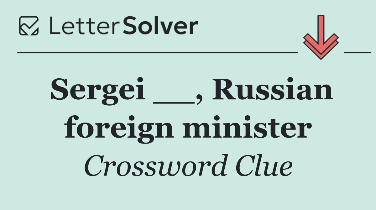 We specialize in solving many of your favorite puzzles, including the New York Times, USA Today, LA Times, Daily Themed Crosswords, and more. The "Sergei __, Russian foreign minister" clue from the Guardian Weekend puzzle, June 11 edition, is one such example.