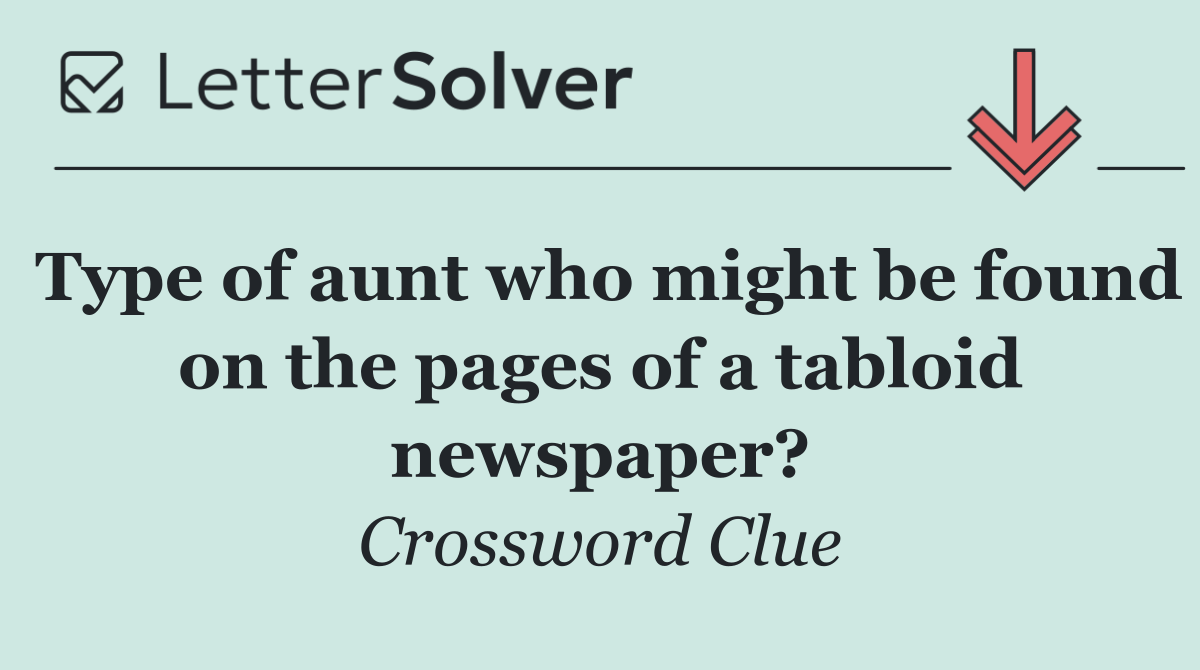 We specialize in solving many of your favorite puzzles, including the New York Times, USA Today, LA Times, Daily Themed Crosswords, and more. The "Type of aunt who might be found on the pages of a tabloid newspaper?" clue from the Guardian Weekend puzzle, December 11 edition, is one such example.