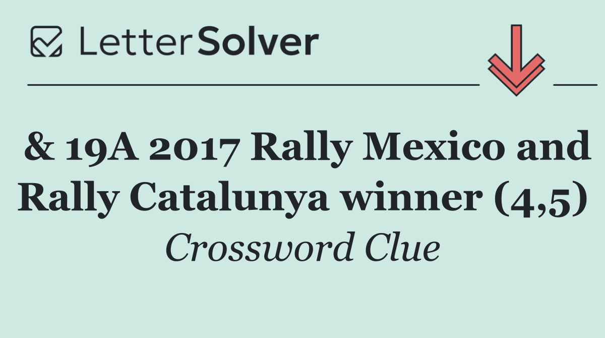 We specialize in solving many of your favorite puzzles, including the New York Times, USA Today, LA Times, Daily Themed Crosswords, and more. The "& 19A 2017 Rally Mexico and Rally Catalunya winner (4,5)" clue from the Mirror Quiz puzzle, June 15 edition, is one such example.