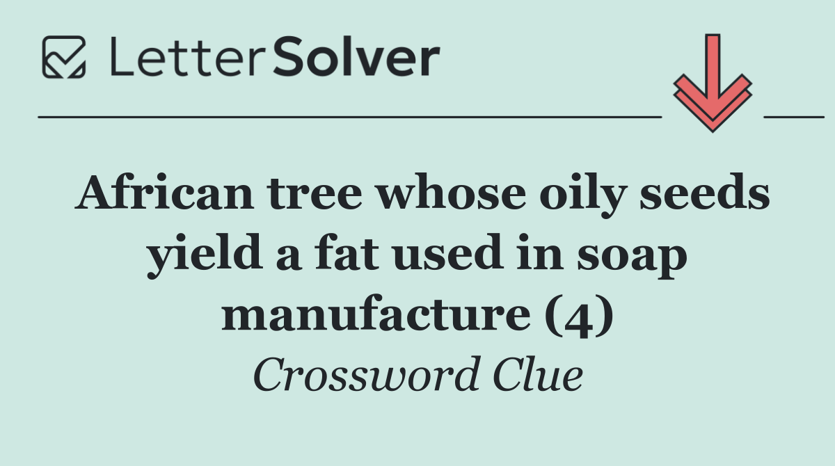 We specialize in solving many of your favorite puzzles, including the New York Times, USA Today, LA Times, Daily Themed Crosswords, and more. The "African tree whose oily seeds yield a fat used in soap manufacture (4)" clue from the Mirror Quiz puzzle, June 05 edition, is one such example.