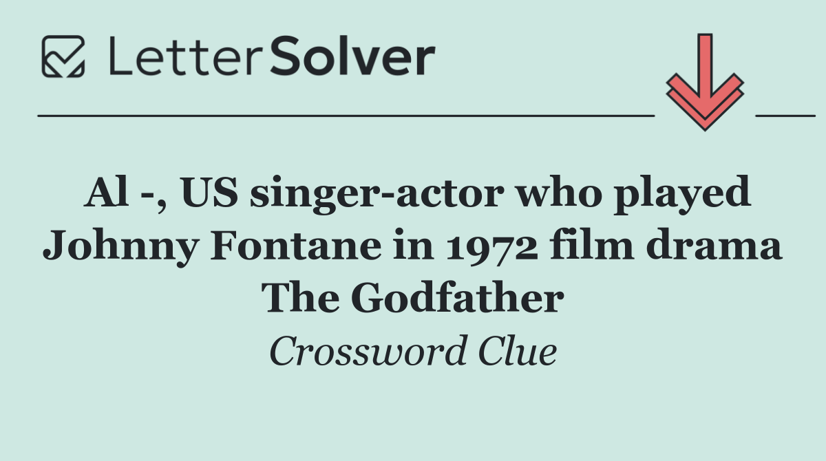 We specialize in solving many of your favorite puzzles, including the New York Times, USA Today, LA Times, Daily Themed Crosswords, and more. The "Al , US singer actor who played Johnny Fontane in 1972 film drama The Godfather" clue from the Mirror Quiz puzzle, January 08 edition, is one such example.