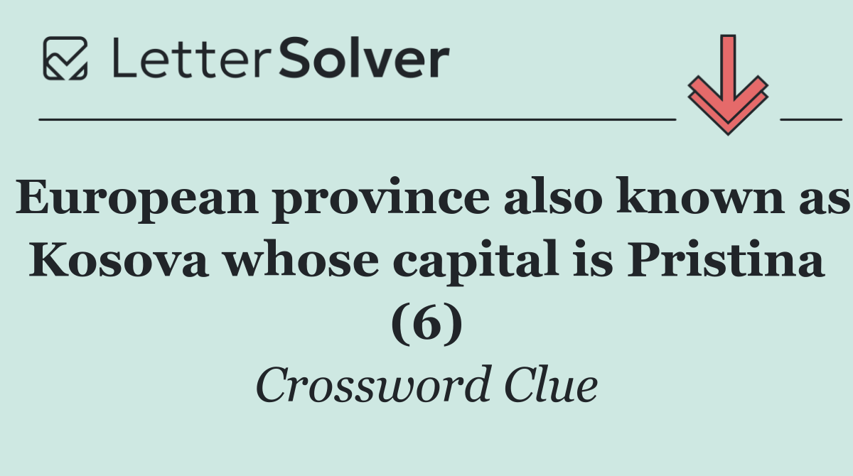 We specialize in solving many of your favorite puzzles, including the New York Times, USA Today, LA Times, Daily Themed Crosswords, and more. The "European province also known as Kosova whose capital is Pristina (6)" clue from the Mirror Quiz puzzle, June 08 edition, is one such example.