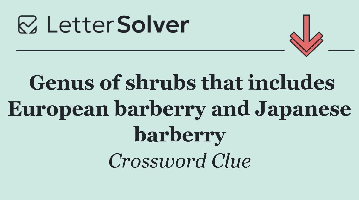 We specialize in solving many of your favorite puzzles, including the New York Times, USA Today, LA Times, Daily Themed Crosswords, and more. The "Genus of shrubs that includes European barberry and Japanese barberry" clue from the Mirror Quiz puzzle, January 09 edition, is one such example.