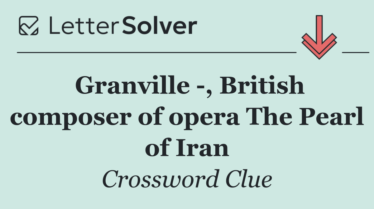 We specialize in solving many of your favorite puzzles, including the New York Times, USA Today, LA Times, Daily Themed Crosswords, and more. The "Granville , British composer of opera The Pearl of Iran" clue from the Mirror Quiz puzzle, March 01 edition, is one such example.