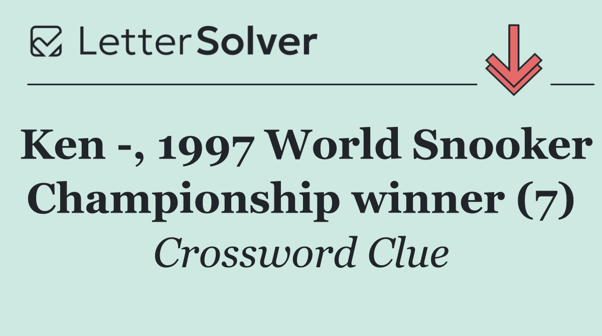 We specialize in solving many of your favorite puzzles, including the New York Times, USA Today, LA Times, Daily Themed Crosswords, and more. The "Ken , 1997 World Snooker Championship winner (7)" clue from the Mirror Quiz puzzle, June 15 edition, is one such example.