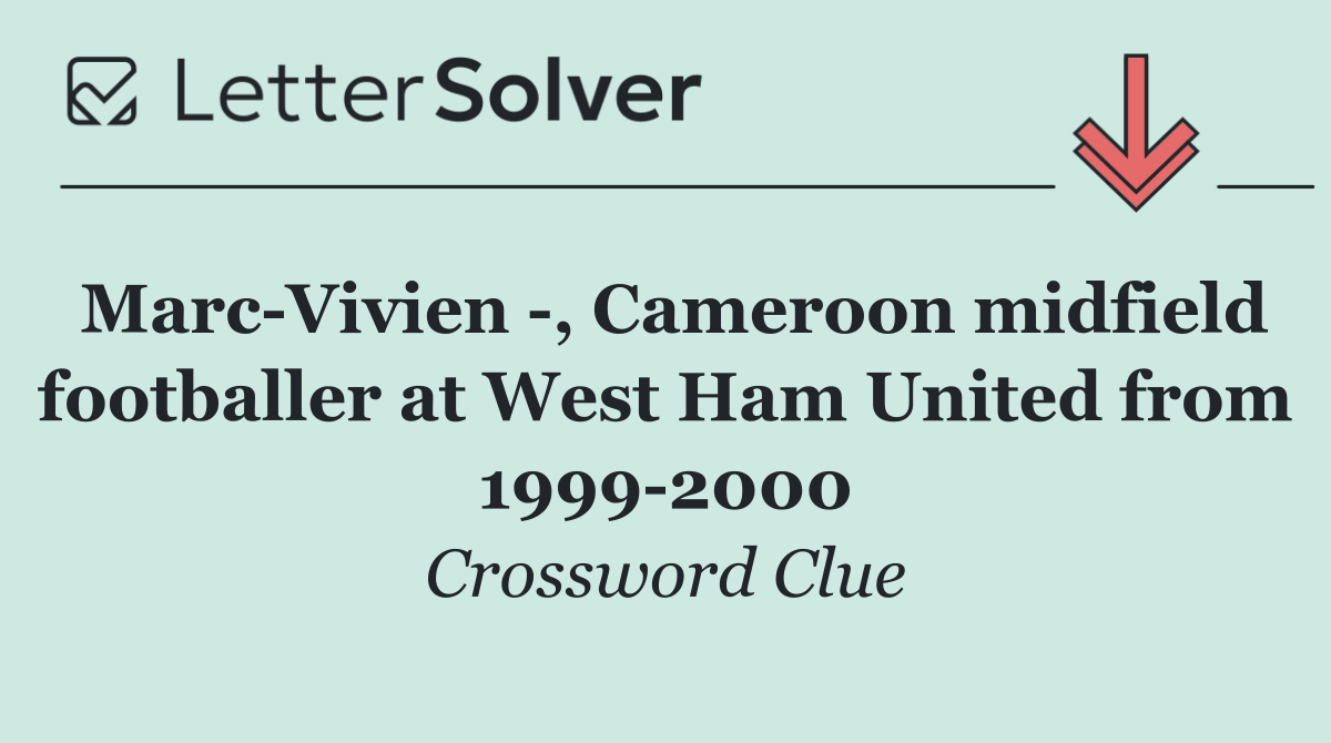 We specialize in solving many of your favorite puzzles, including the New York Times, USA Today, LA Times, Daily Themed Crosswords, and more. The "Marc Vivien , Cameroon midfield footballer at West Ham United from 1999 2000" clue from the Mirror Quiz puzzle, December 06 edition, is one such example.