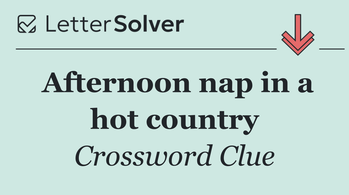 We specialize in solving many of your favorite puzzles, including the New York Times, USA Today, LA Times, Daily Themed Crosswords, and more. The "Afternoon nap in a hot country" clue from the Mirror Classic puzzle, May 13 edition, is one such example.