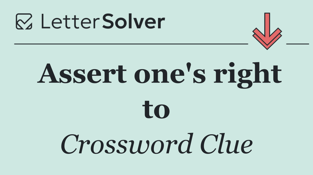 We specialize in solving many of your favorite puzzles, including the New York Times, USA Today, LA Times, Daily Themed Crosswords, and more. The "Assert one's right to" clue from the Mirror Classic puzzle, November 14 edition, is one such example.