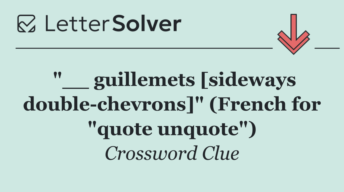We specialize in solving many of your favorite puzzles, including the New York Times, USA Today, LA Times, Daily Themed Crosswords, and more. The ""__ guillemets [sideways double chevrons]" (French for "quote unquote")" clue from the Newsday puzzle, April 26 edition, is one such example.