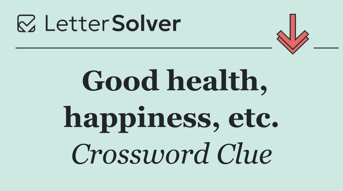 We specialize in solving many of your favorite puzzles, including the New York Times, USA Today, LA Times, Daily Themed Crosswords, and more. The "Good health, happiness, etc." clue from the Newsday puzzle, December 06 edition, is one such example.