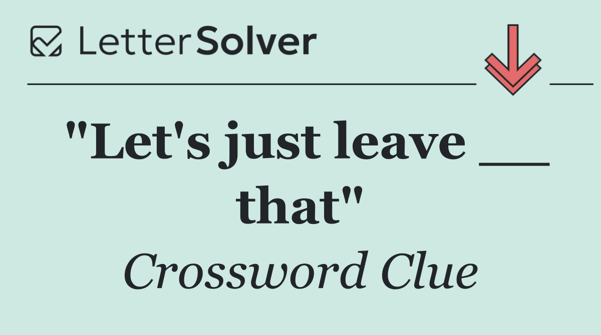 We specialize in solving many of your favorite puzzles, including the New York Times, USA Today, LA Times, Daily Themed Crosswords, and more. The ""Let's just leave __ that"" clue from the Newsday puzzle, November 19 edition, is one such example.