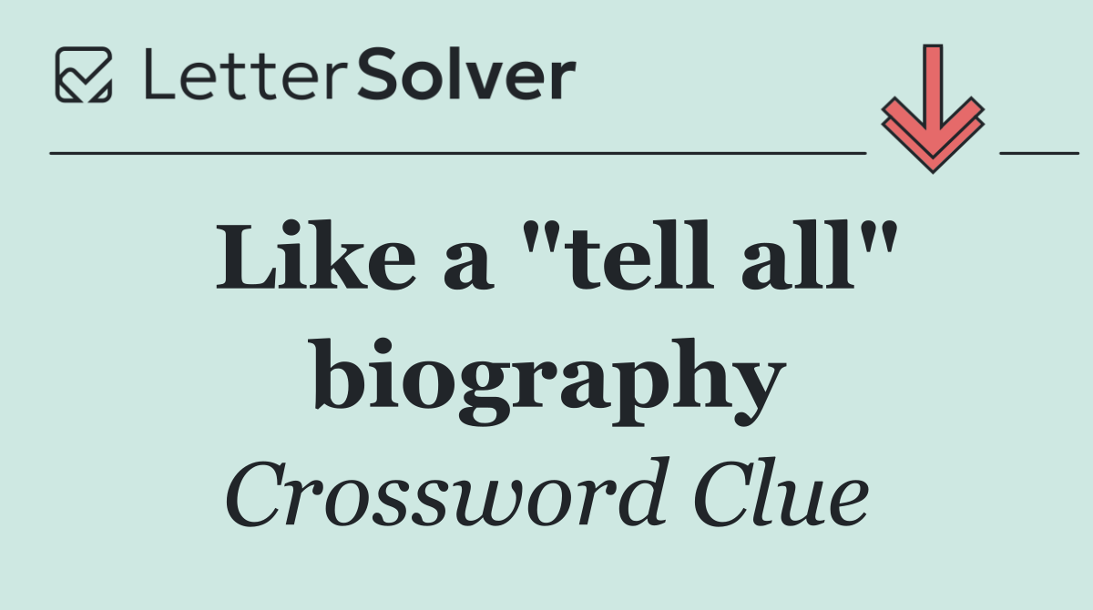 We specialize in solving many of your favorite puzzles, including the New York Times, USA Today, LA Times, Daily Themed Crosswords, and more. The "Like a "tell all" biography" clue from the Newsday puzzle, June 02 edition, is one such example.