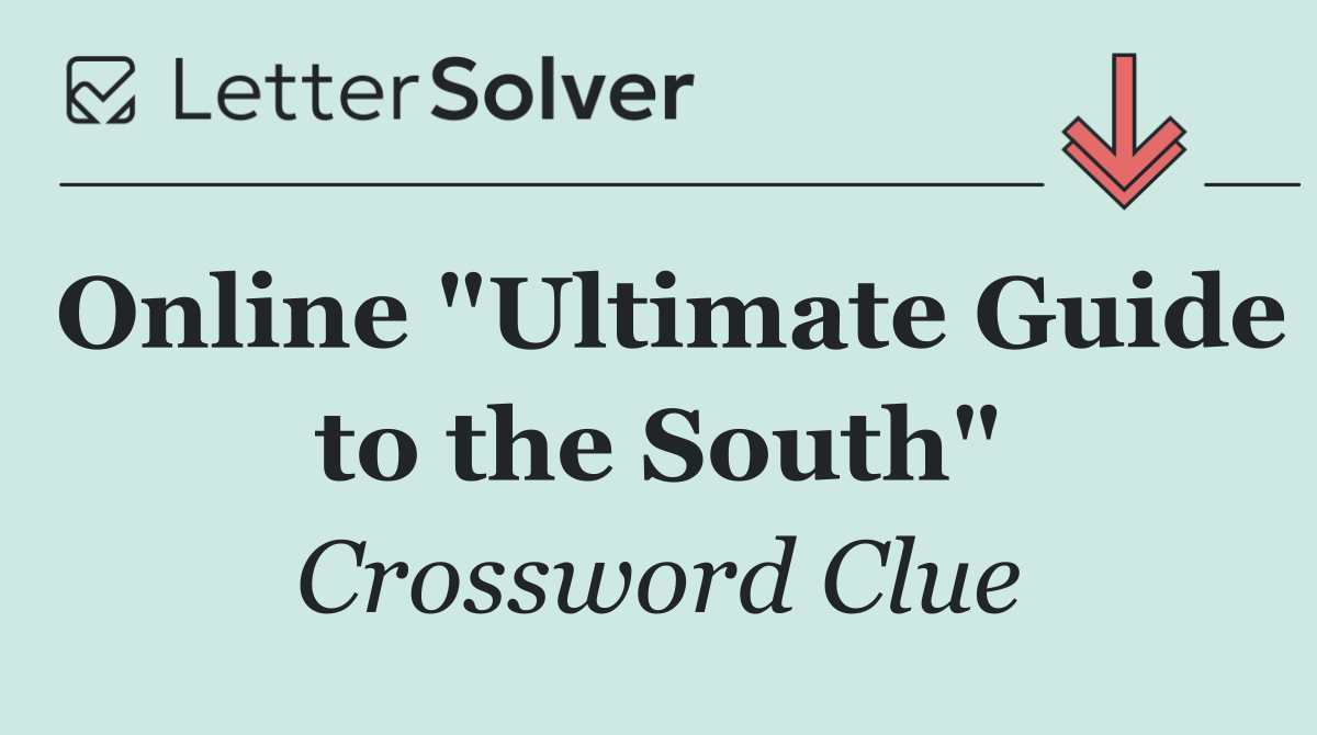 We specialize in solving many of your favorite puzzles, including the New York Times, USA Today, LA Times, Daily Themed Crosswords, and more. The "Online "Ultimate Guide to the South"" clue from the Newsday puzzle, February 08 edition, is one such example.