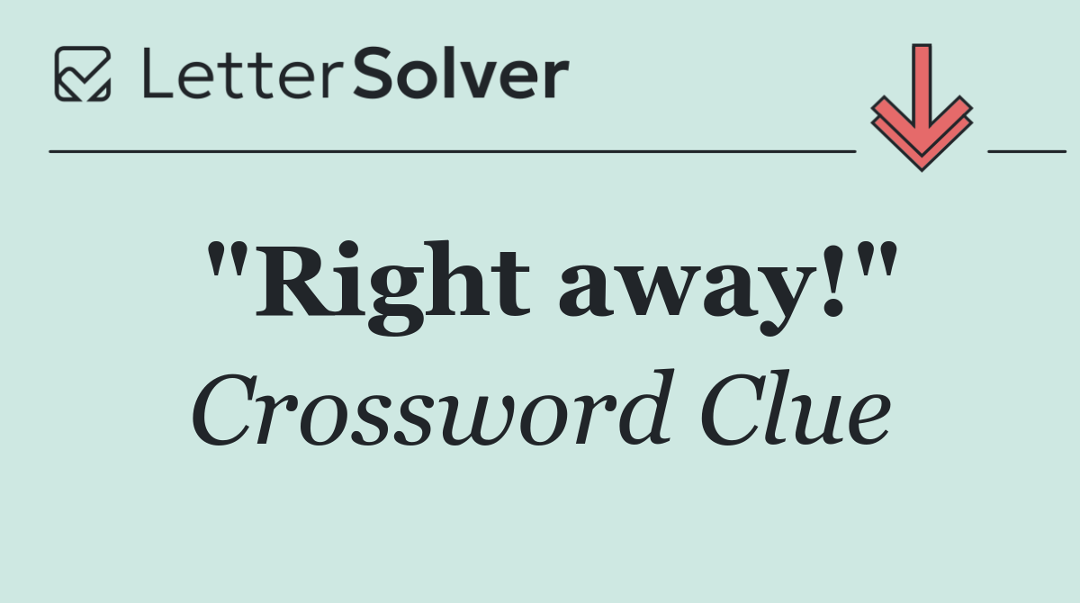 We specialize in solving many of your favorite puzzles, including the New York Times, USA Today, LA Times, Daily Themed Crosswords, and more. The ""Right away!"" clue from the Newsday puzzle, August 11 edition, is one such example.