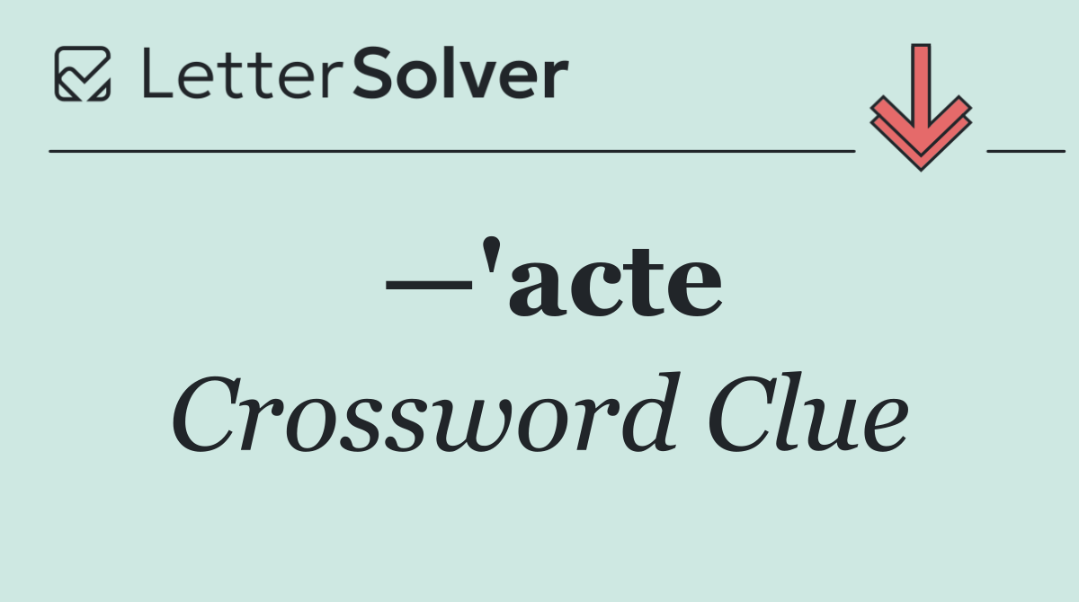 We specialize in solving many of your favorite puzzles, including the New York Times, USA Today, LA Times, Daily Themed Crosswords, and more. The "—'acte" clue from the Premier Sunday puzzle, March 19 edition, is one such example.