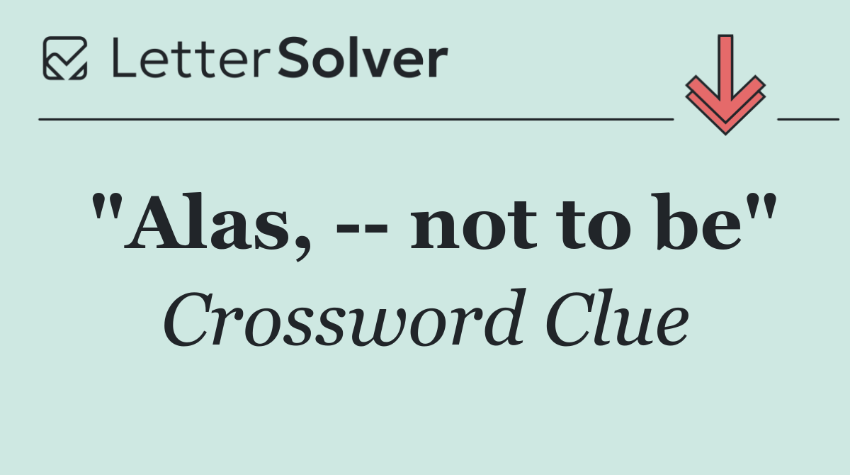We specialize in solving many of your favorite puzzles, including the New York Times, USA Today, LA Times, Daily Themed Crosswords, and more. The ""Alas, not to be"" clue from the Premier Sunday puzzle, June 22 edition, is one such example.