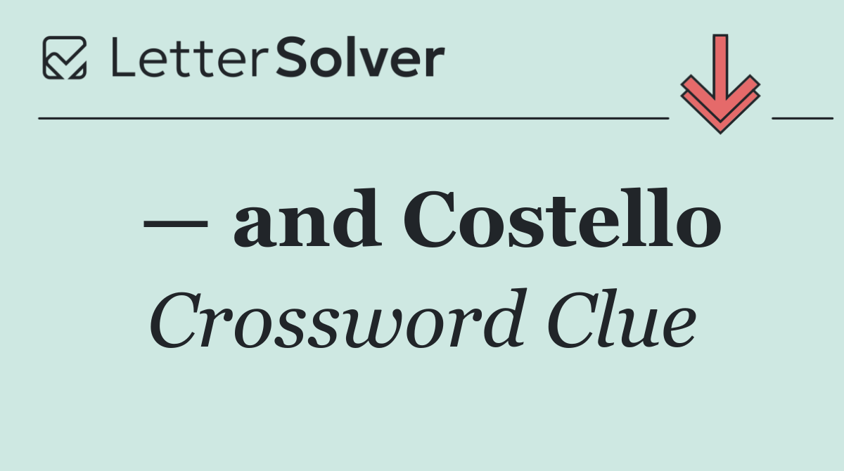 We specialize in solving many of your favorite puzzles, including the New York Times, USA Today, LA Times, Daily Themed Crosswords, and more. The "— and Costello" clue from the Premier Sunday puzzle, November 26 edition, is one such example.