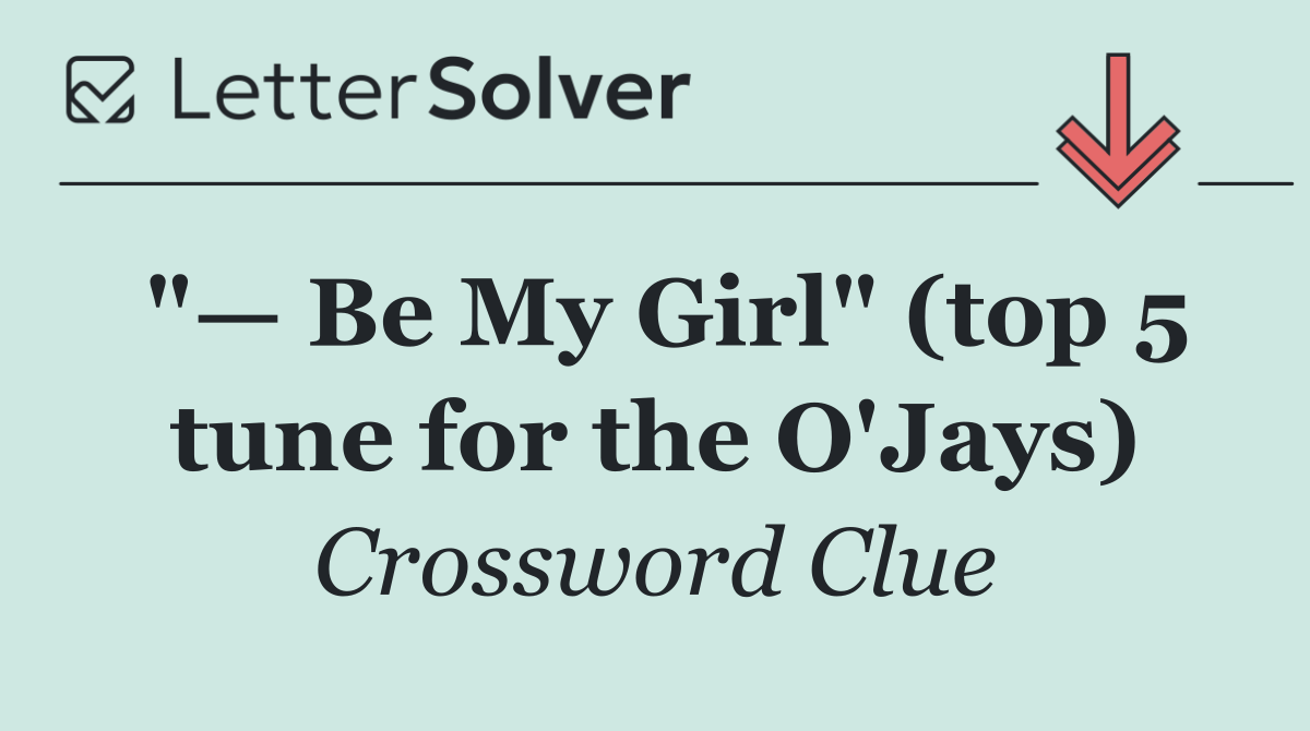 We specialize in solving many of your favorite puzzles, including the New York Times, USA Today, LA Times, Daily Themed Crosswords, and more. The ""— Be My Girl" (top 5 tune for the O'Jays)" clue from the Premier Sunday puzzle, November 29 edition, is one such example.