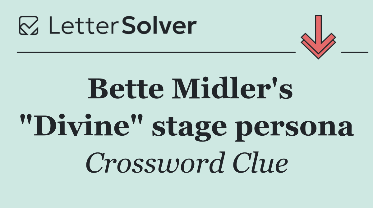 We specialize in solving many of your favorite puzzles, including the New York Times, USA Today, LA Times, Daily Themed Crosswords, and more. The "Bette Midler's "Divine" stage persona" clue from the Premier Sunday puzzle, July 16 edition, is one such example.