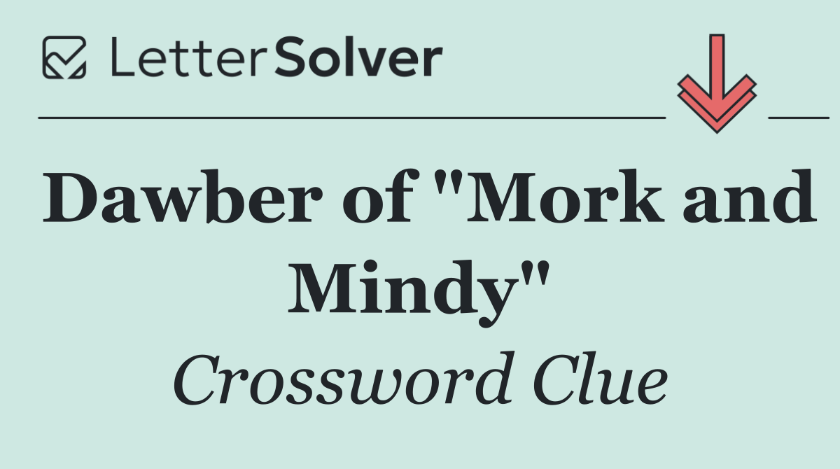We specialize in solving many of your favorite puzzles, including the New York Times, USA Today, LA Times, Daily Themed Crosswords, and more. The "Dawber of "Mork and Mindy"" clue from the Premier Sunday puzzle, July 04 edition, is one such example.