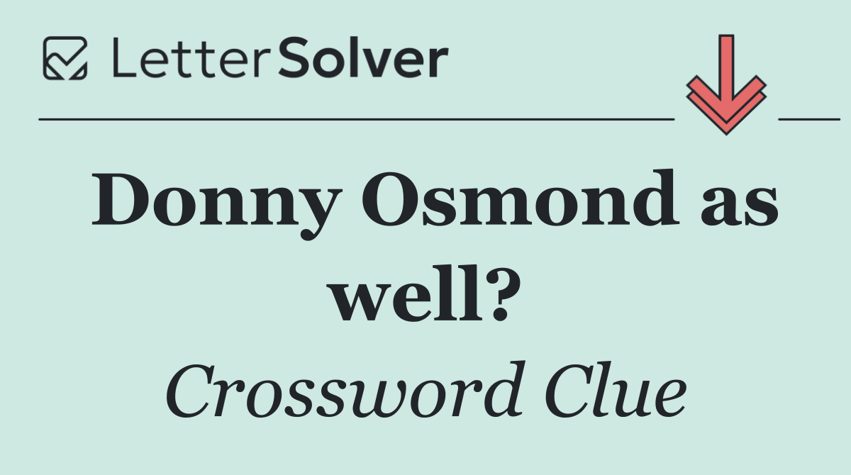 We specialize in solving many of your favorite puzzles, including the New York Times, USA Today, LA Times, Daily Themed Crosswords, and more. The "Donny Osmond as well?" clue from the Premier Sunday puzzle, May 25 edition, is one such example.