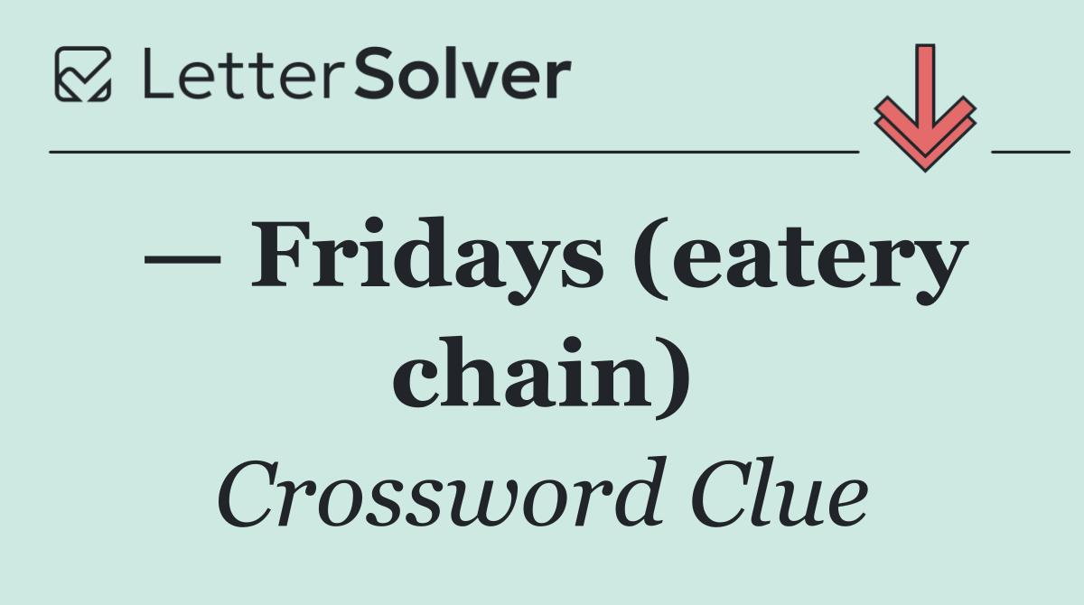 We specialize in solving many of your favorite puzzles, including the New York Times, USA Today, LA Times, Daily Themed Crosswords, and more. The "— Fridays (eatery chain)" clue from the Premier Sunday puzzle, December 03 edition, is one such example.