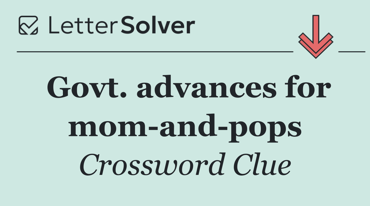 We specialize in solving many of your favorite puzzles, including the New York Times, USA Today, LA Times, Daily Themed Crosswords, and more. The "Govt. advances for mom and pops" clue from the Premier Sunday puzzle, April 10 edition, is one such example.