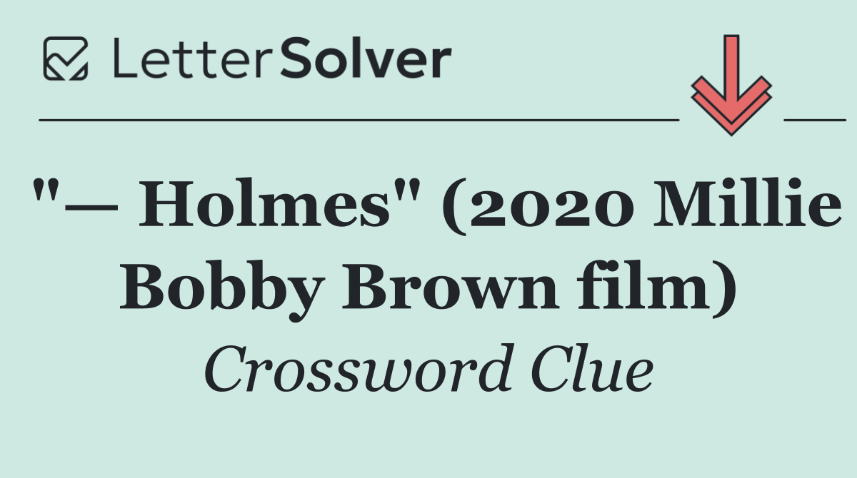 We specialize in solving many of your favorite puzzles, including the New York Times, USA Today, LA Times, Daily Themed Crosswords, and more. The ""— Holmes" (2020 Millie Bobby Brown film)" clue from the Premier Sunday puzzle, July 03 edition, is one such example.