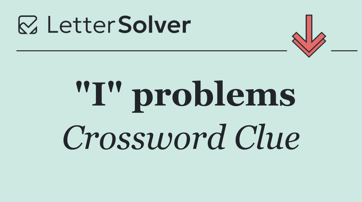 We specialize in solving many of your favorite puzzles, including the New York Times, USA Today, LA Times, Daily Themed Crosswords, and more. The ""I" problems" clue from the Premier Sunday puzzle, November 23 edition, is one such example.