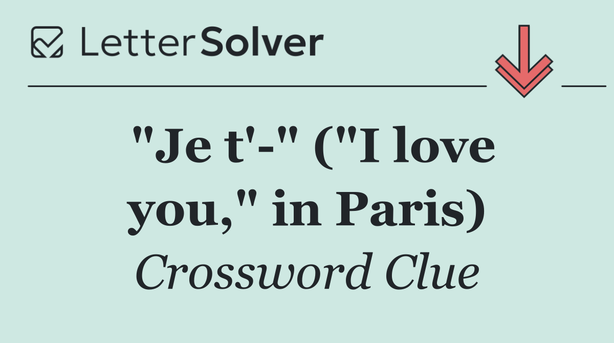 We specialize in solving many of your favorite puzzles, including the New York Times, USA Today, LA Times, Daily Themed Crosswords, and more. The ""Je t' " ("I love you," in Paris)" clue from the Premier Sunday puzzle, June 09 edition, is one such example.