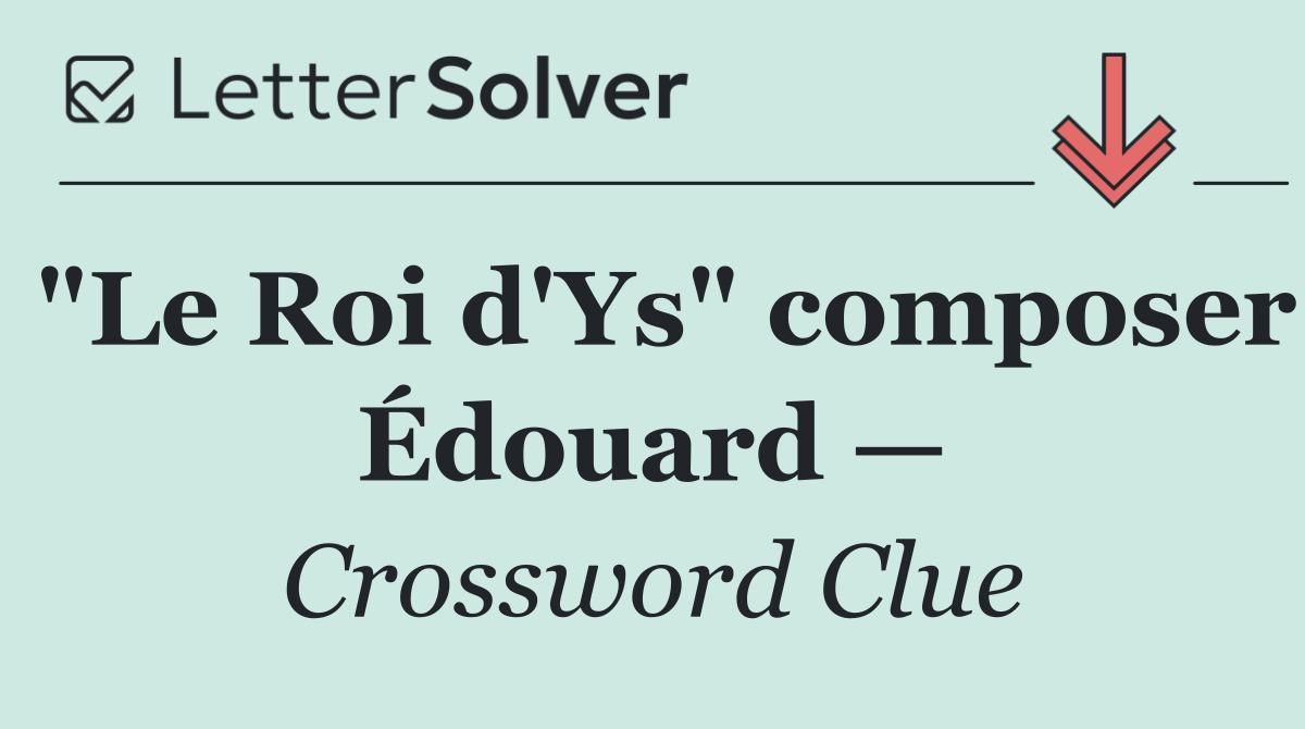 We specialize in solving many of your favorite puzzles, including the New York Times, USA Today, LA Times, Daily Themed Crosswords, and more. The ""Le Roi d'Ys" composer Édouard —" clue from the Premier Sunday puzzle, November 22 edition, is one such example.