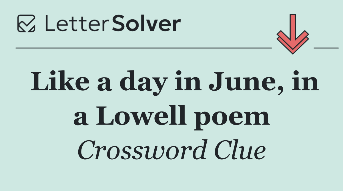 We specialize in solving many of your favorite puzzles, including the New York Times, USA Today, LA Times, Daily Themed Crosswords, and more. The "Like a day in June, in a Lowell poem" clue from the Premier Sunday puzzle, October 03 edition, is one such example.