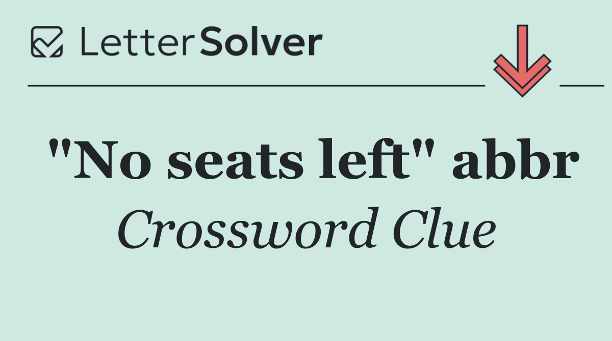 We specialize in solving many of your favorite puzzles, including the New York Times, USA Today, LA Times, Daily Themed Crosswords, and more. The ""No seats left" abbr" clue from the Premier Sunday puzzle, November 28 edition, is one such example.