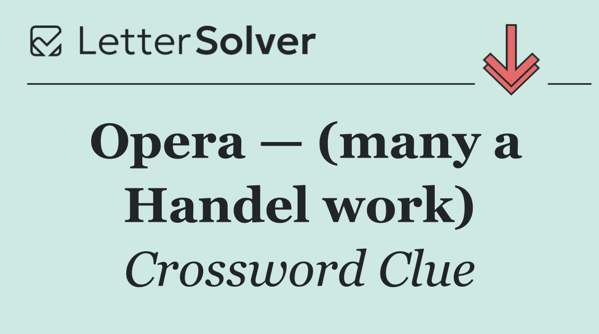 We specialize in solving many of your favorite puzzles, including the New York Times, USA Today, LA Times, Daily Themed Crosswords, and more. The "Opera — (many a Handel work)" clue from the Premier Sunday puzzle, December 06 edition, is one such example.
