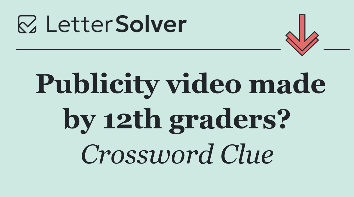 We specialize in solving many of your favorite puzzles, including the New York Times, USA Today, LA Times, Daily Themed Crosswords, and more. The "Publicity video made by 12th graders?" clue from the Premier Sunday puzzle, November 10 edition, is one such example.