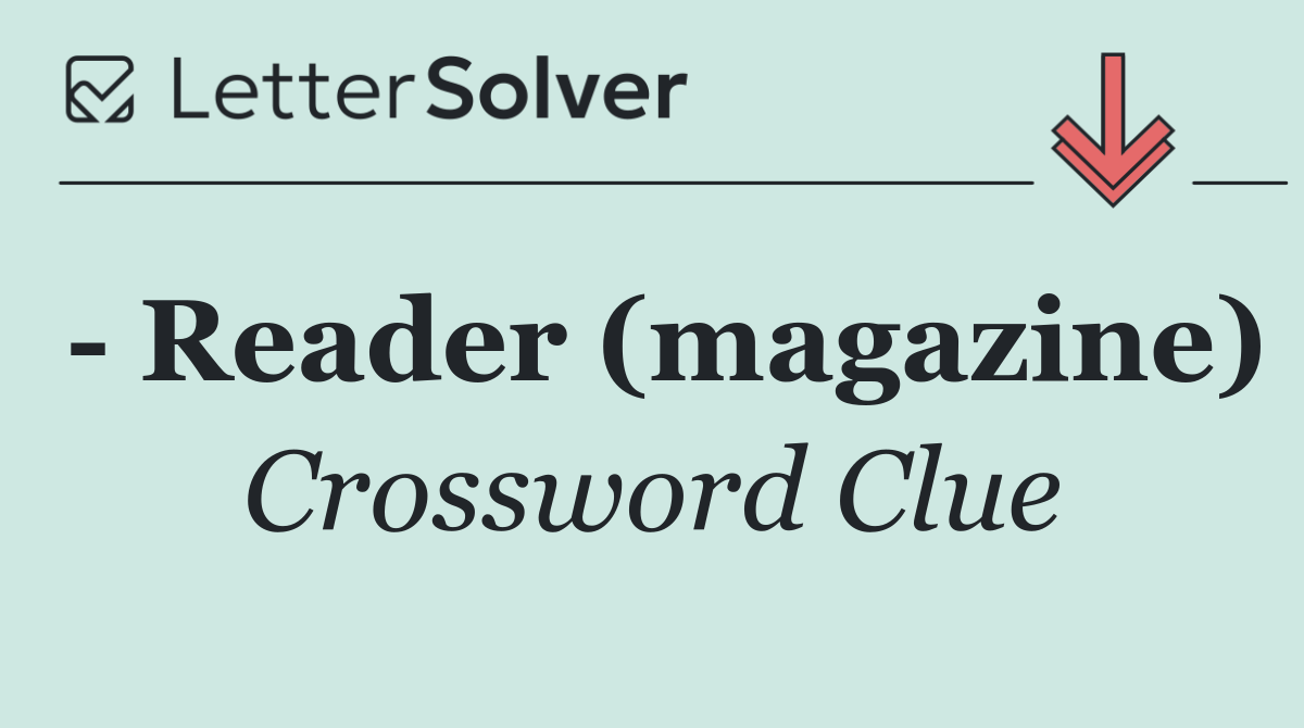 We specialize in solving many of your favorite puzzles, including the New York Times, USA Today, LA Times, Daily Themed Crosswords, and more. The " Reader (magazine)" clue from the Premier Sunday puzzle, June 09 edition, is one such example.