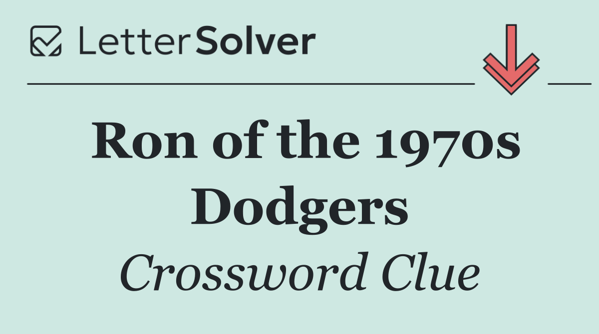 We specialize in solving many of your favorite puzzles, including the New York Times, USA Today, LA Times, Daily Themed Crosswords, and more. The "Ron of the 1970s Dodgers" clue from the Premier Sunday puzzle, October 10 edition, is one such example.