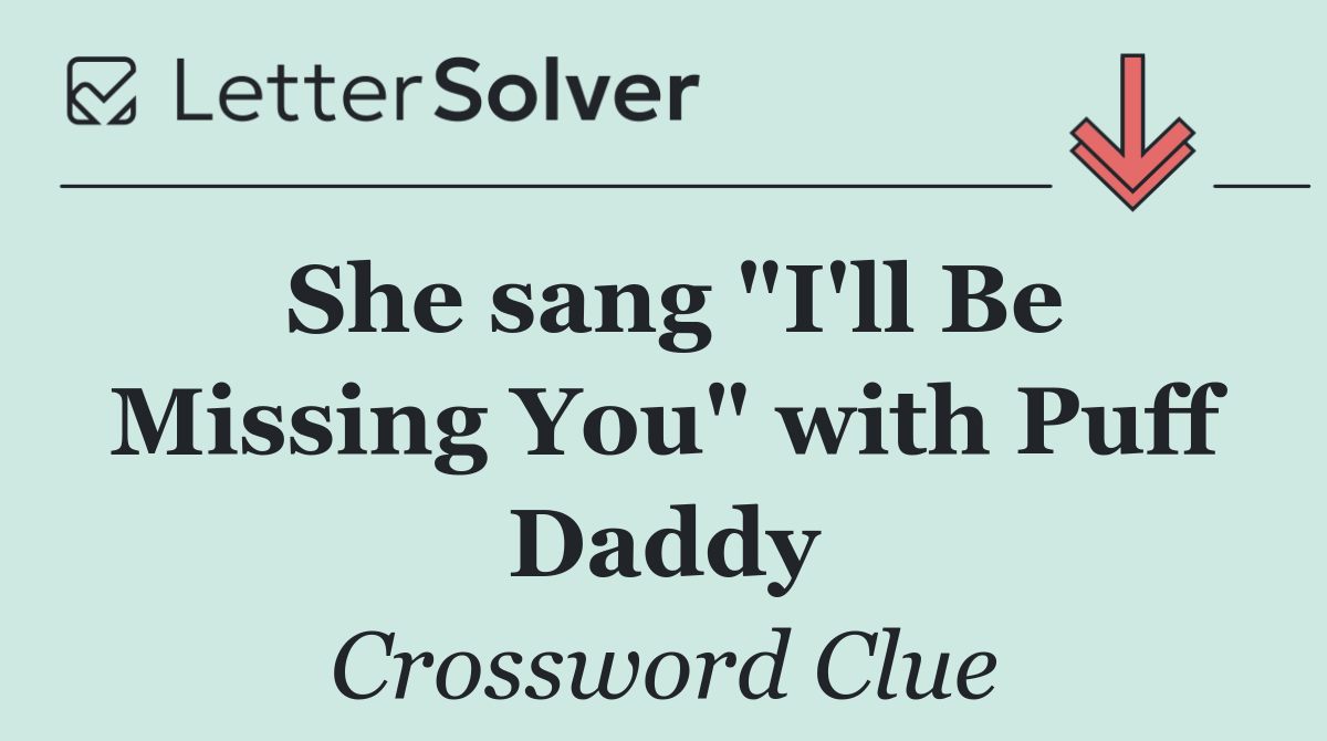 We specialize in solving many of your favorite puzzles, including the New York Times, USA Today, LA Times, Daily Themed Crosswords, and more. The "She sang "I'll Be Missing You" with Puff Daddy" clue from the Premier Sunday puzzle, October 17 edition, is one such example.